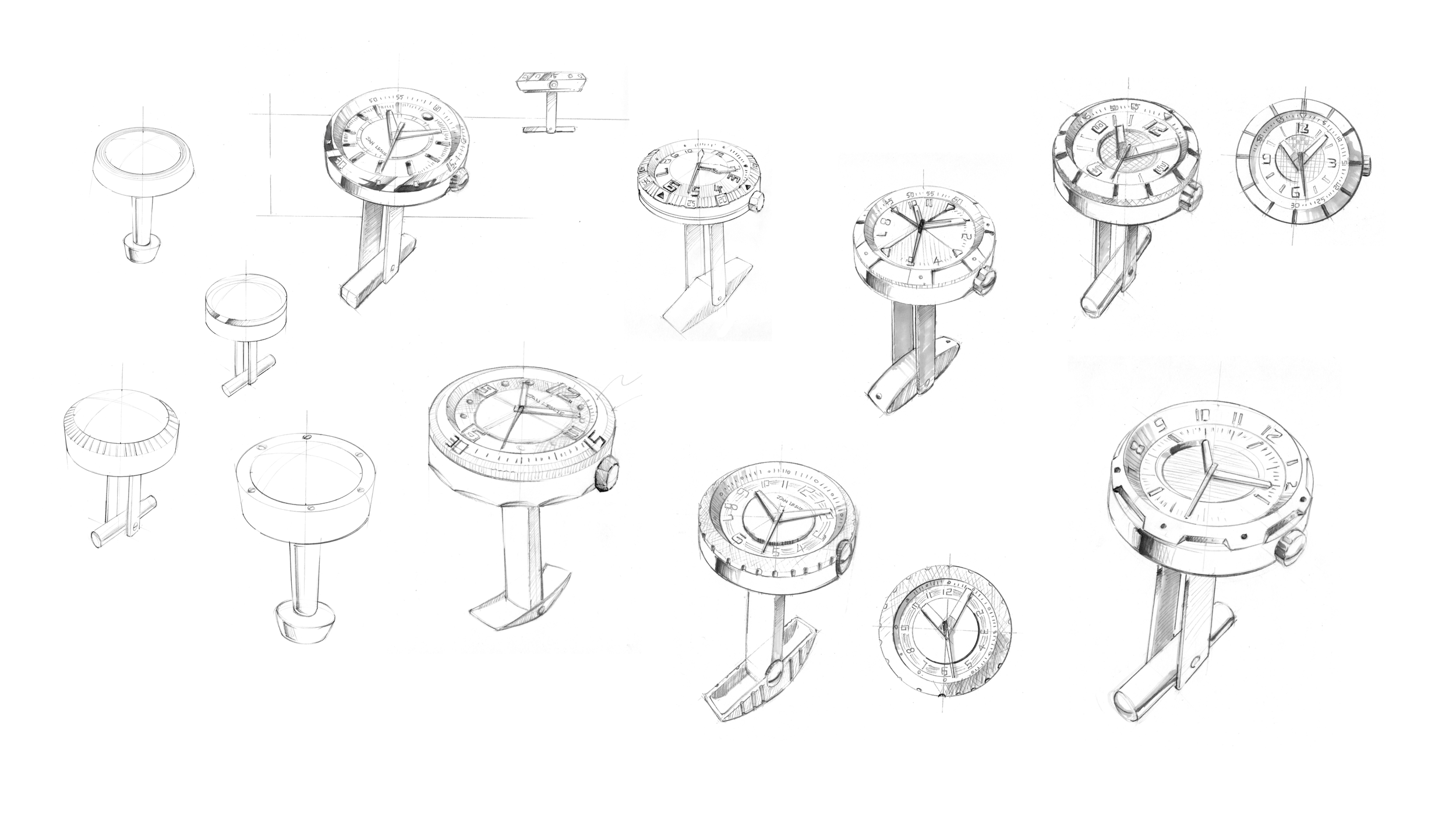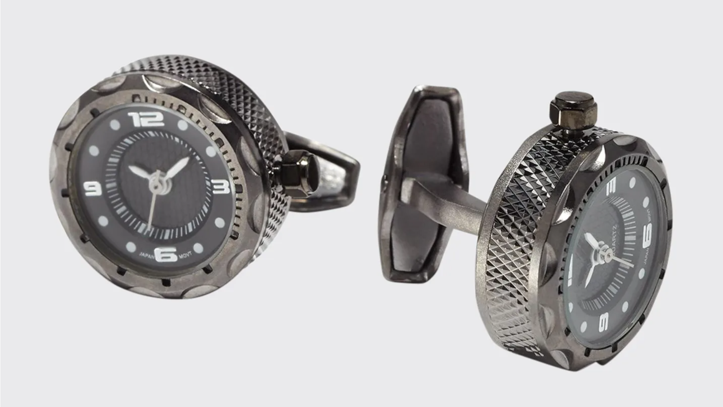 The design direction was to be clean, sporty, classic with a modern flare. Each cufflink would work as a watch with real movements inside. Colorways were simple and traditional sports colors: silver, black, and blue dials, with silver, gun metal and black case.