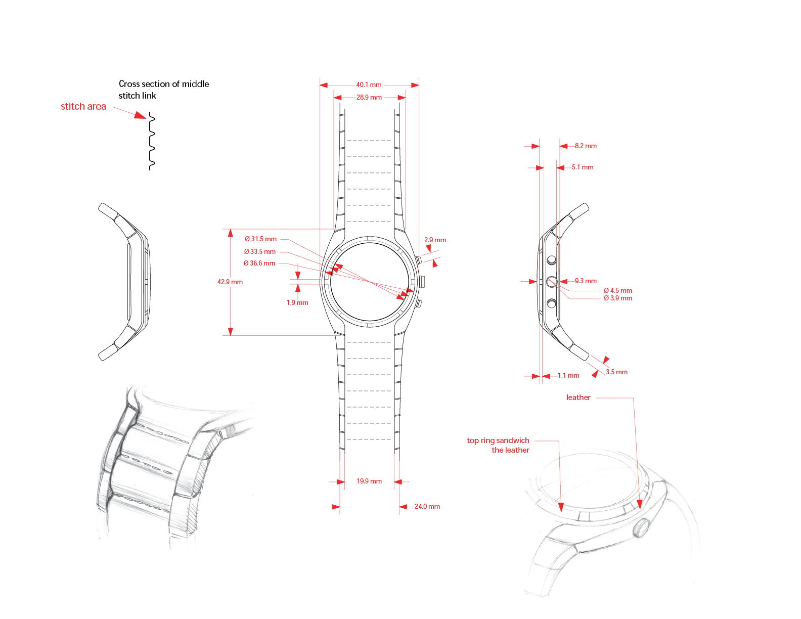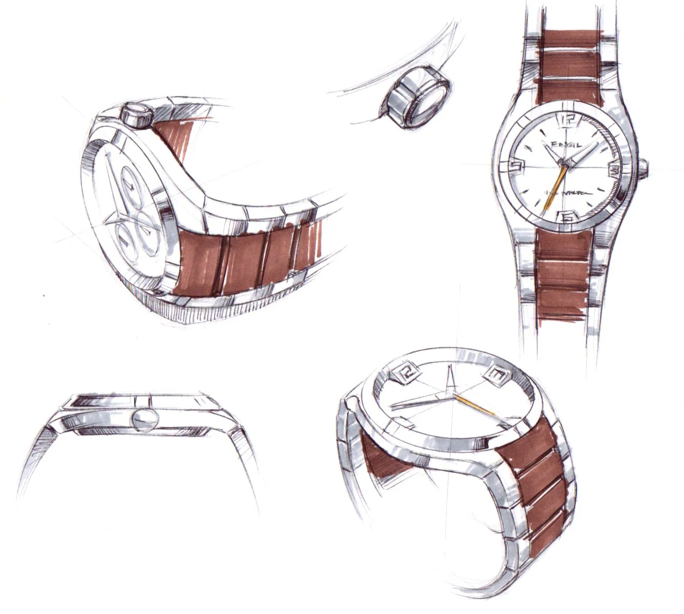 The design was a mix of classic 70s vintage sports style with a cleaner modern flare. Leveraging the mix materials on the bracelet and modern dial aesthetics, the intention was to give Fossil sports line a fresh look.