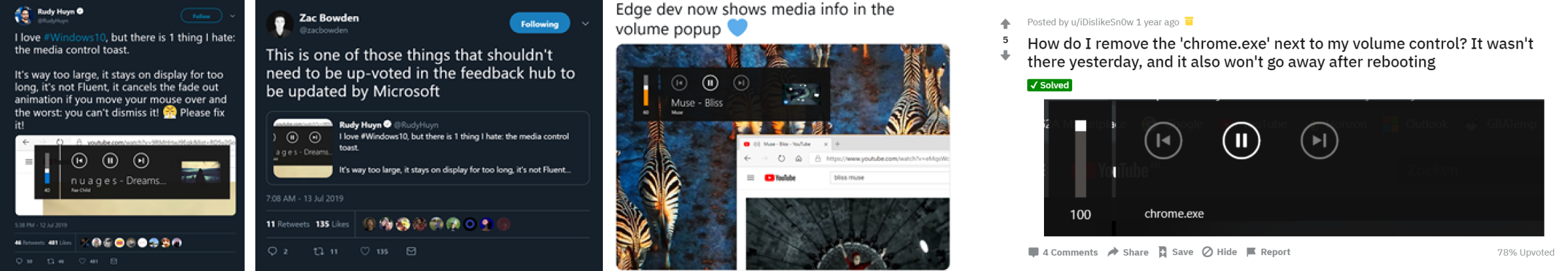 Media transport control is a system UI that controls any media session that is running, i.e. music, video, etc. within Windows 10. It allows the user to quickly control (play/pause, forward and back) any media session that is running without digging for the source. It can easily be invoked by pressing the hardware volume keys.