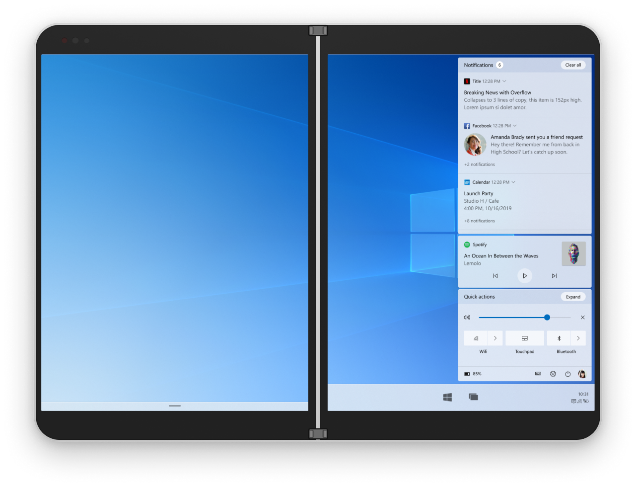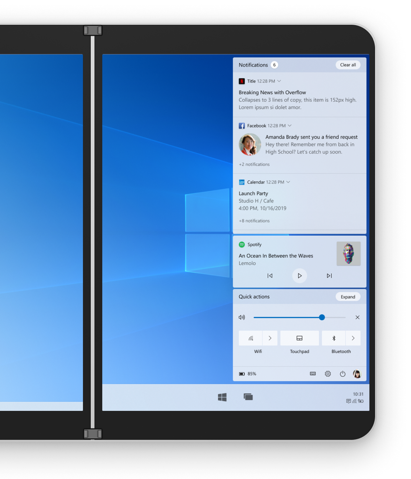 Exploring concepts that would match well with the notifications and quick settings in Windows 10X